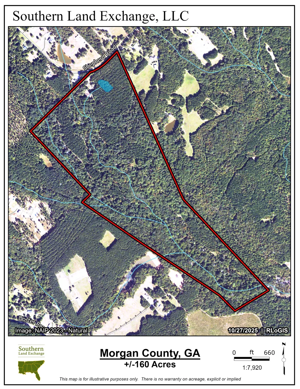 Southern Land Exchange is proud to present 1321 Shepherd Road - 160 acres in Morgan County coming to market for the first time in 45 years. Located in one of Madison's most desirable areas, the property is less than 10 minutes north of historic downtown Madison, 10 minutes from Hard Labor State Park and less than 2 miles from Scarlett Oaks Estate! There's a good internal road & trail network and with the abundance of wildlife, the recreational opportunities are excellent. The property is predominantly hardwoods and with over 9,000 ft of streams, 30+ acres of mature pine stands and sandy creek bottoms, you are surrounded by natural beauty. There is over 600 ft of frontage on Shepherd Road, allowing for the potential for the new owner to divide the property. Additionally, there is a 1920's historic home on the property, currently occupied with tenants. For those looking for a pond or lake, this property does have an existing old pond site and with all the water running through the property there could be potential for a much larger lake to be built. Come be a part of Madison's small-town charm and thriving outdoor culture!