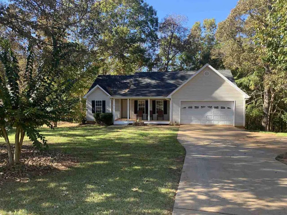 Relax on your front porch in this quiet area or enjoy the privacy of back deck grilling surrounded by nature with dining area accessible from deck. Kitchen w/ lots of cabinet space, walk-in pantry and an island for added counter space. Split bedroom plan, owners suite w/huge walk-in closet. Actual laundry room, 2 car garage, all on an acre lot that is within walking distance of Jackson lake.