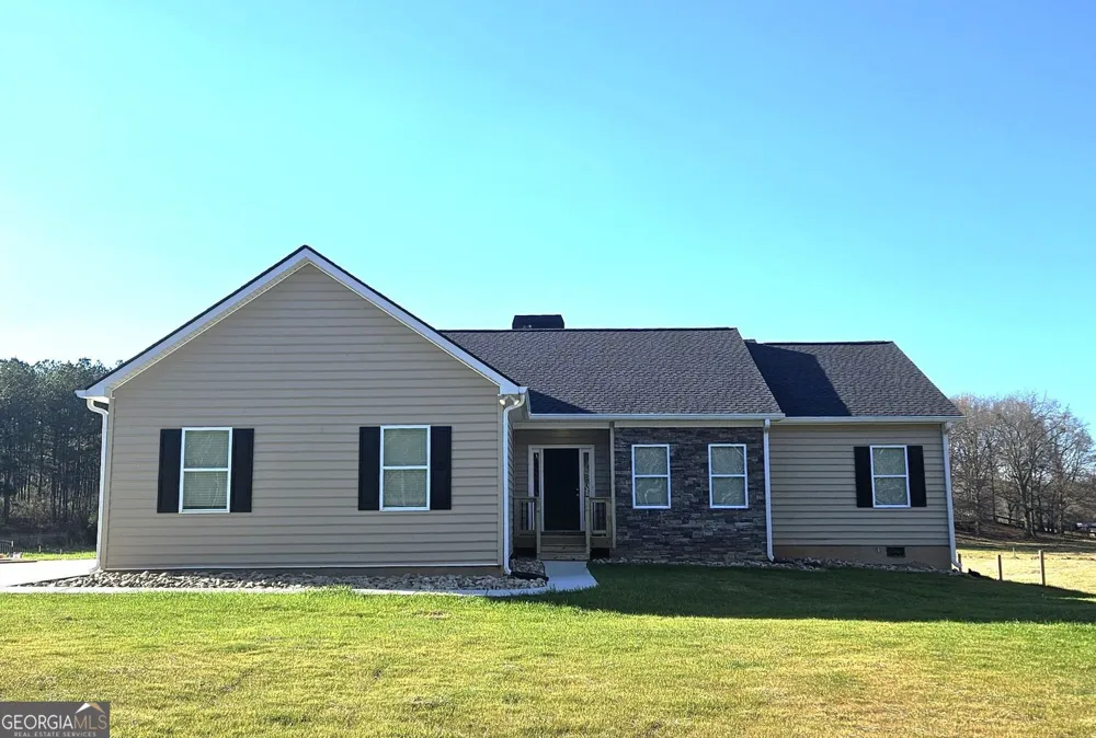 Be the first to live in this amazing four-bedroom, two-bath ranch home with a desirable split-bedroom floor plan, located in a peaceful country setting with wide-open blue skies and pastoral views, including cows grazing in the field next door! This newly constructed home features hardwood floors in the large living room with wood-burning fireplace! Cooking is a pleasure in the large open kitchen with crisp white cabinets, granite countertops, stainless steel appliances and an eat-in area for casual meals. Enjoy entertaining friends and family in a separate dining room! The spacious primary bedroom includes a private en suite with his and her vanities and has a separate garden bath and shower. The bedroom next to the master bedroom is perfect for a guest room or an office! Two additional bedrooms are on the other side of the house and have a shared bathroom. This new ranch comes with plenty of storage space, a washer/dryer room, a double garage, and a deck for relaxing with morning coffee enjoying the pastoral view! You will be bathed in peace and comfort in this beautiful new ranch located near Tanger Outlet, Highway 85, and North Ga. mountains! All applicants will apply through TransUnion Smart Move at a cost of $47. Applicants must have a credit score of 700 +, pass a back ground and credit check. Pets are allowed with a $500 non-refundable pet fee. Only one small, well trained dog (no pit bulls or similar dogs)