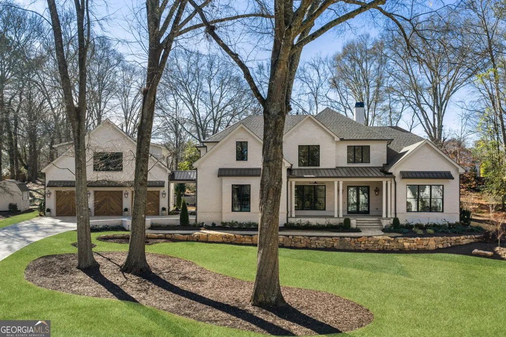 202 Kenneth rises in the true Garden District of Alpharetta, where tree lined streets, quiet mornings, and weekend markets create an unmistakable sense of place. This exceptional New Construction home stands with graceful presence, four sides of soft white brick catching the light and offering a timeless first impression. As you pull into the wide paver driveway, the scale becomes clear. A five car garage stretches across the side elevation, a rare luxury that immediately sets this property apart. Three of those bays support a full carriage house above, creating a private retreat for guests, extended family, or a dedicated workspace that feels tucked away yet connected. The approach alone tells a story of ease, space, and elevated living. Every detail signals a home built for comfort without sacrificing sophistication. Inside, the two story foyer opens with sunlight and drama. Wide plank hardwoods guide you forward while natural wood beams add warmth and a grounded organic touch. The air feels open and calm, with each room unfolding in a way that encourages you to linger. The kitchen becomes the emotional center of the home. It is equal parts luxury and livable function, anchored by a Wolf all gas range and framed by Sub Zero appliances that feel sculptural in their simplicity. A walk in pantry and a hidden scullery create a seamless flow with storage, prep space, and top tier appliances discreetly out of sight. The keeping room and living room each feature a stone masonry fireplace, offering texture and a sense of craftsmanship. These spaces connect openly with the kitchen, shaping a home that welcomes gatherings both large and intimate. The main level primary suite is designed as a personal retreat. A quiet sitting room or private office sits within the suite, offering a peaceful moment at the start or end of the day. The bath invites calm with a soaking tub, double rain shower, and jetted shower feature. A private laundry room in the suite adds convenience and privacy, elevating everyday living. Outdoor life begins on the covered patio and continues to the private in-ground swimming pool ($200,000 allowance) to be finished Q1 or Q2 of 2026. The pool sits just beyond the porch, creating a serene view from dawn to dusk. The four hundred ninety nine square foot cabana is ready to become a poolside living area, and an outdoor shower can be added near the cabana for a true resort style experience, already approved with the city if buyer would like as an addition. Upstairs, the home continues to deliver thoughtful luxury. A media room, an additional laundry room, spacious guest suites, and an office with its own undercounter refrigerator create flexibility for every season of life. The carriage house, located above the three car garage, offers its own kitchen, laundry, and full living quarters. It gives the home depth, privacy, and purpose, whether used for guests, long stays, or a separate work environment. Every finish and feature feels intentional. Natural light from every direction. Three laundry rooms. Stone, wood, and brick layered for warmth. Indoor and outdoor living seamlessly connected. All of this set within minutes of top rated schools, Alpharetta's beloved dining scene, the Saturday farmers market, concerts, boutique shopping, Avalon, and the easy access of GA four hundred. This is a home that blends comfort with refinement, livability with luxury, and craftsmanship with a sense of calm. Welcome to 202 Kenneth. A lifestyle. A destination. A place to live beautifully..